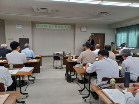 9月27日(土)に第42回社内技術発表会をWeb配信を併用して開催しました。今年度は9月27日を「技術の日」として定め、午前中に土木本部の発表、午後に建築本部の発表を行いました。 発表は土木4現場、建築4現場が発表し