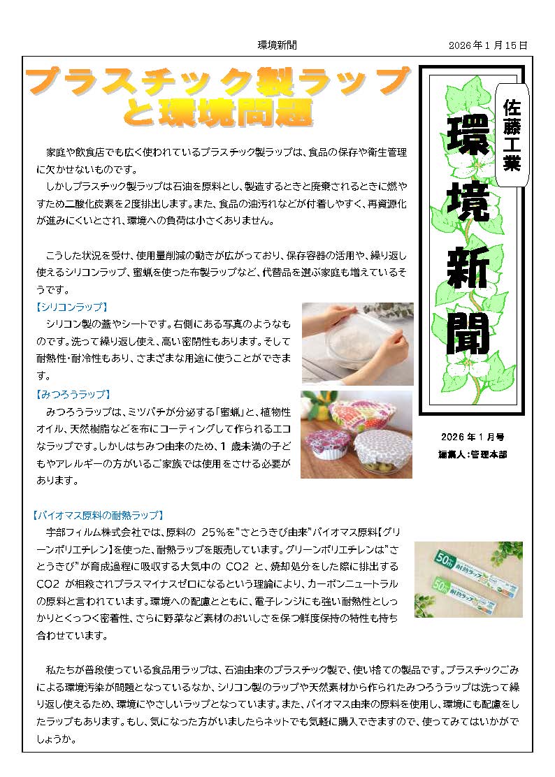 佐藤工業では、会社全体が環境に対する配慮を持てるよう、環境新聞を定期的に発行しています。