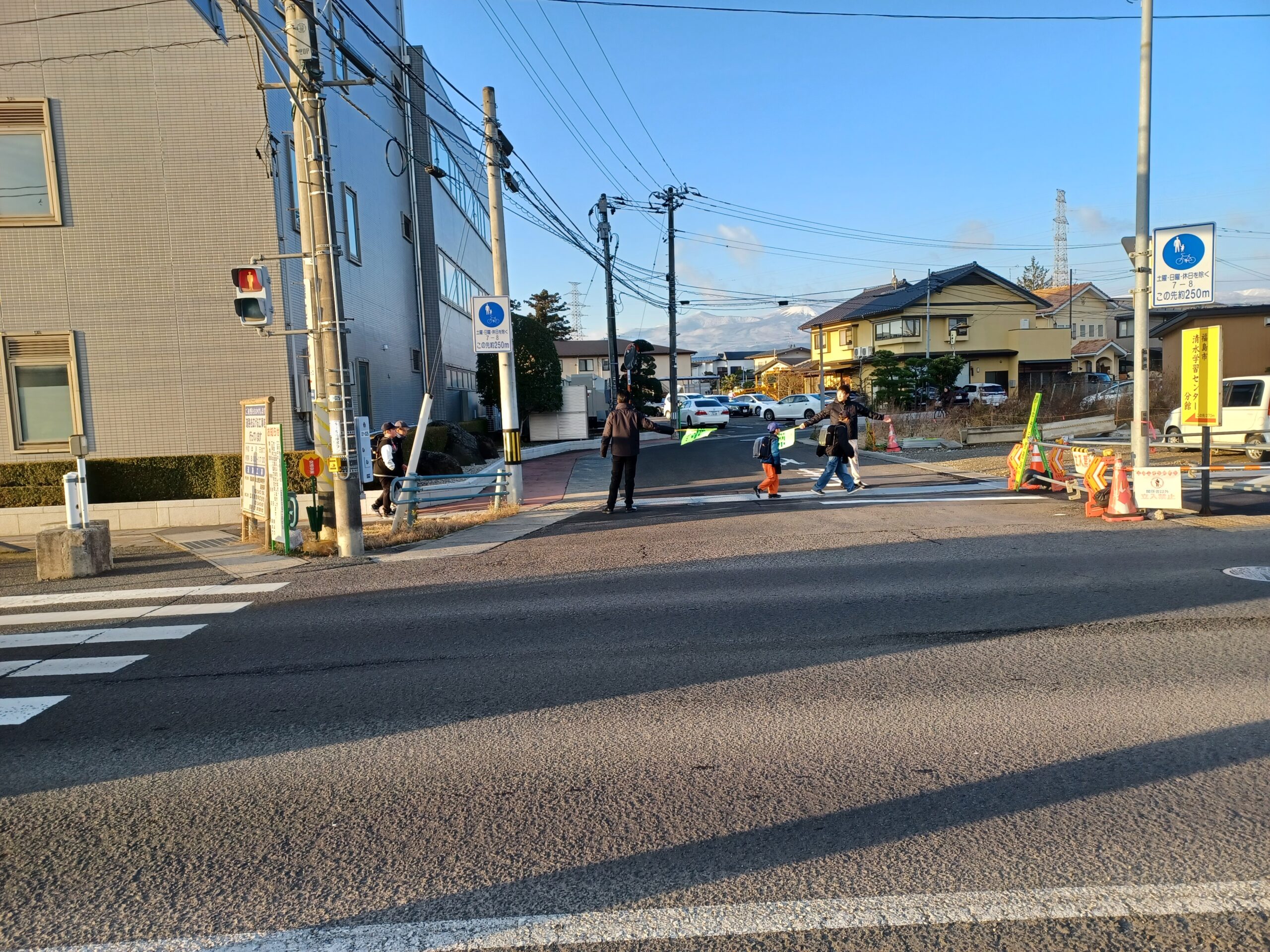 12月10日(水)から1月7日(水)まで「年末年始の交通事故防止県民総ぐるみ運動」が行われました。当社では、12月10日(水)から12月25日(木)の期間、社員が本社前の横断歩道付近にて7時30分から8時まで交通誘導を実施しました。