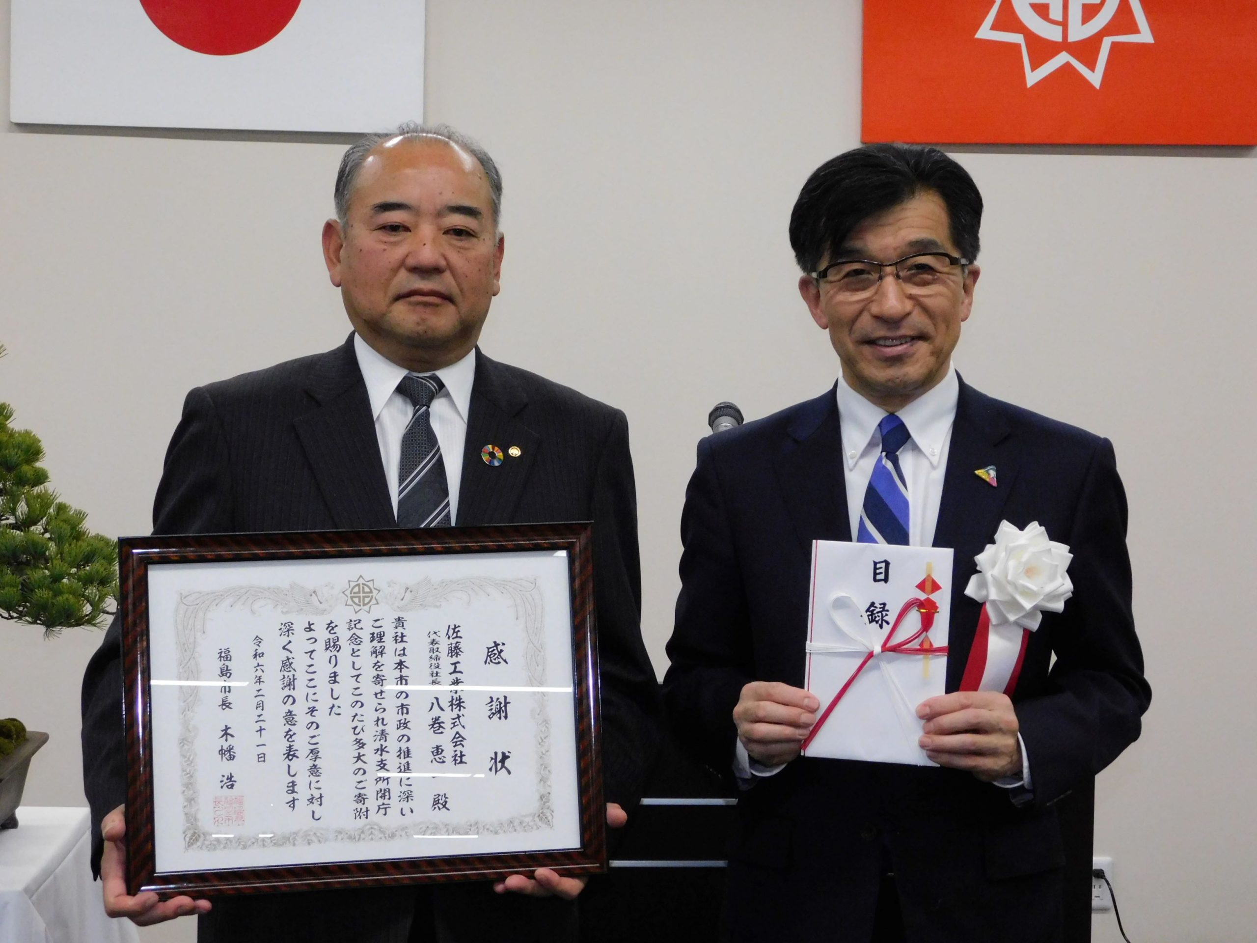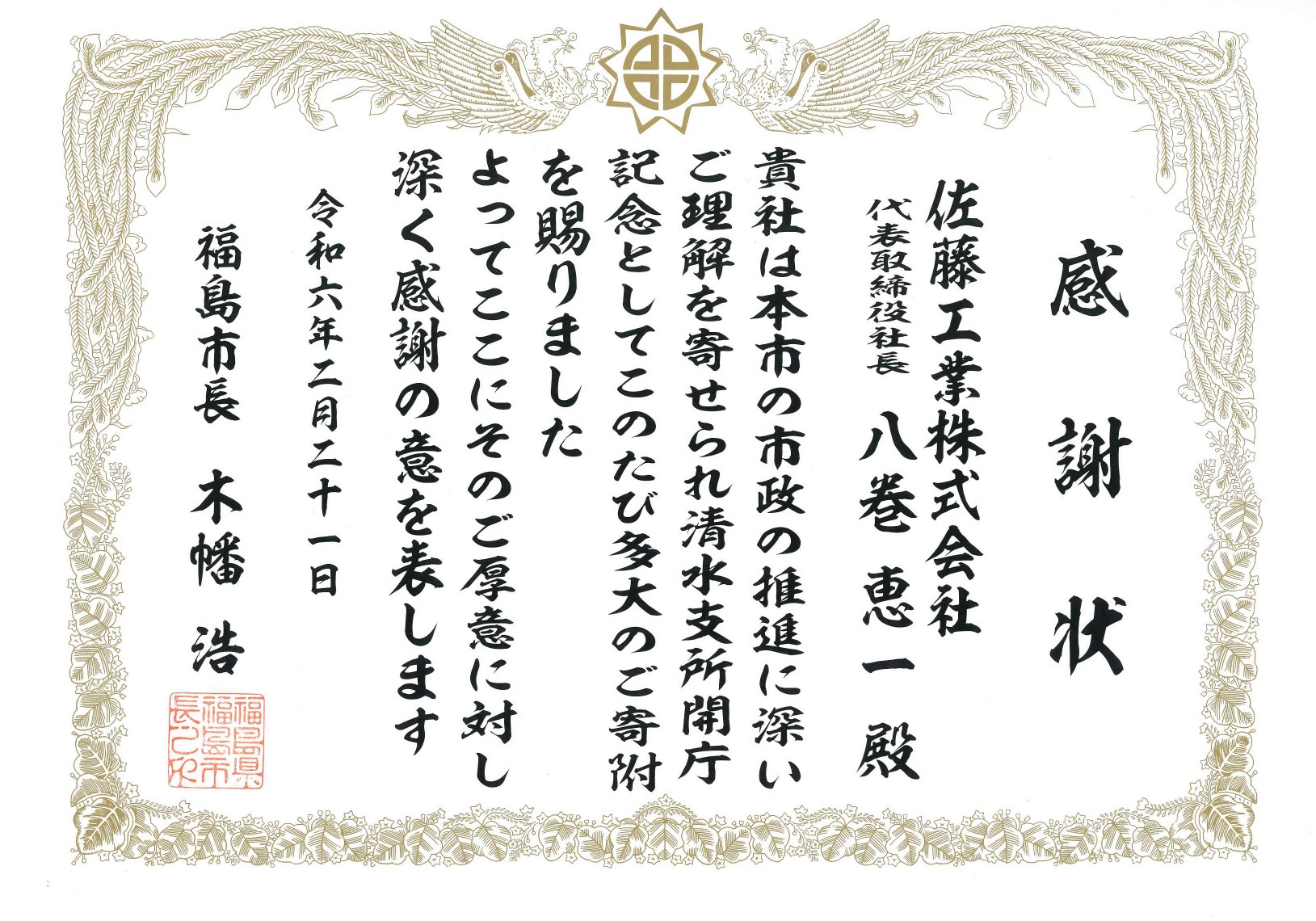 ホーム/お知らせ・リリース/表彰関係/福島市長より感謝状を頂きました