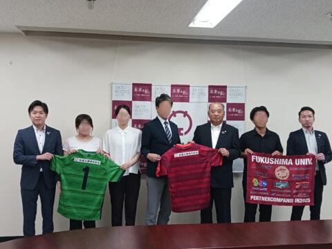 2025年9月9日(火)に協賛に対する御礼として、福島大学サッカー部の監督、選手、マネージャーの方々が来社されました。 当社は、地元の福島大学サッカー部とスポンサー契約を締結し、ユニフォームの背中部分に当社のロゴを掲出し