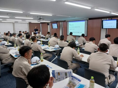 9月10日(水)に品質委員会主催によるICT合同研修会を郡山西部工業団地にて行いました。当日は品質委員会のメンバーをはじめ土木社員、建築社員、内勤社員合わせて29名が参加しました。 研修会では、ICT機器の概要や活用